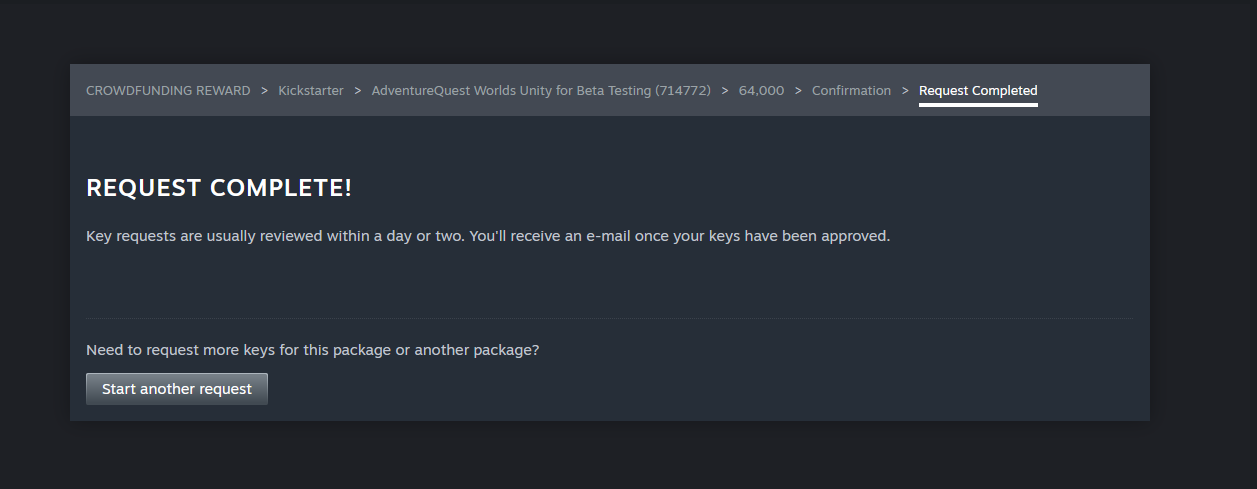 Earlier this week I put in a BIG request for Steam Keys. The status is currently pending.