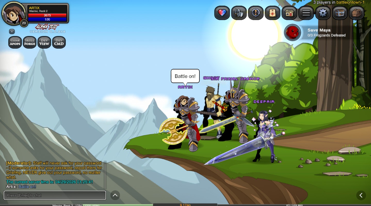 We are preparing the servers and game for the start of Alpha. When you first log into AQWorlds: Infinity, you will come to this screen where you can see your character. From here you can switch servers and redeem codes (like the codes we will be sending backers from the Kickstarter to unlock their rewards). Warlic posted this screenshot because he was surprised to see one of the class skills that Nulgath animated firing for no absolutely no reason. There is only one word to describe such hijinx: "Alpha!".