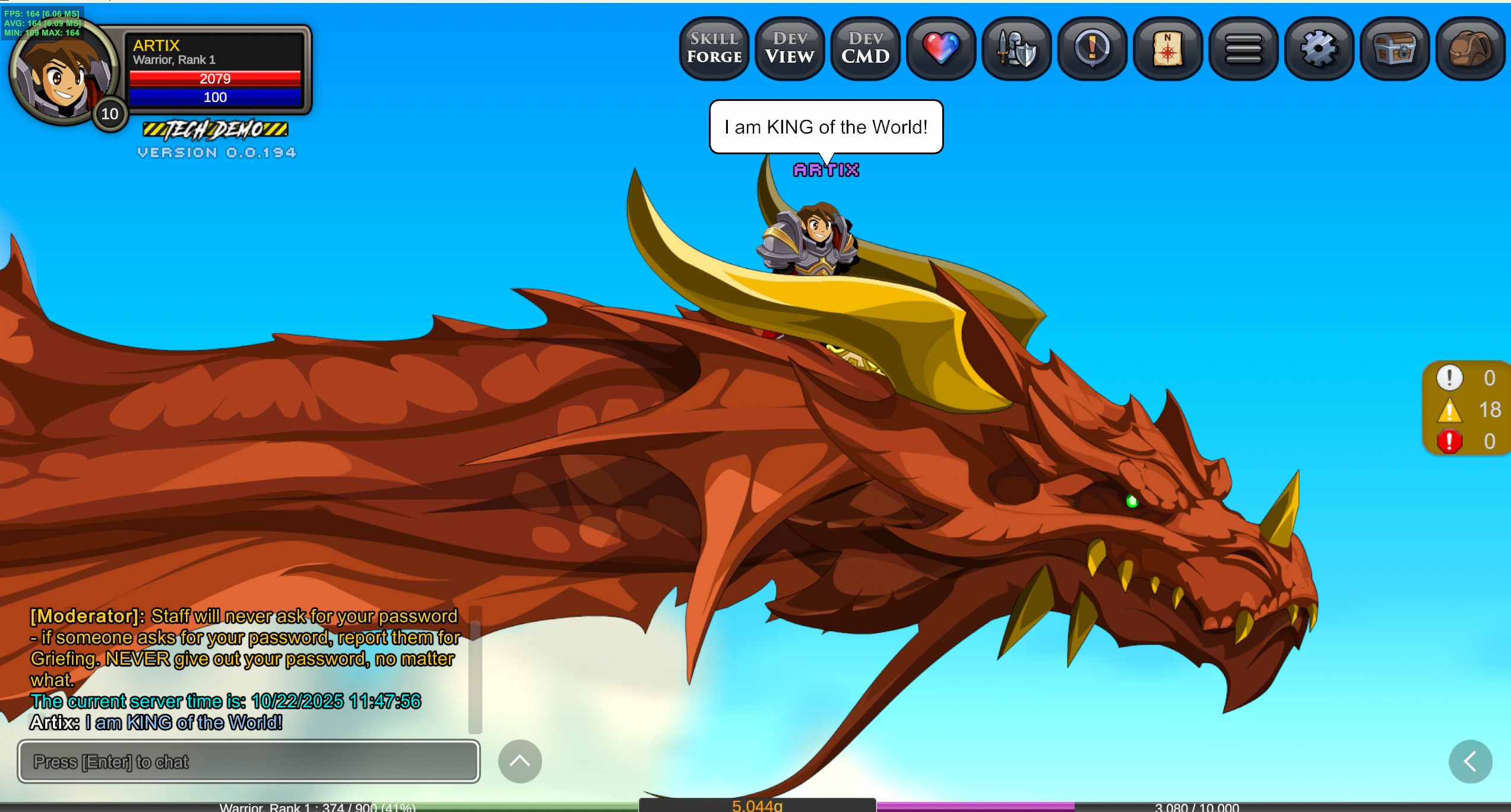 Today I am working at the Secret Underground Lab. (Yes, the same one. Yes, we still have it. Yes, we have been trying to rent it because everyone happily works from home now and no one wants to drive all the way here to work... but it is hard to find someone who wants this much space. You ask really good questions.) Re-building AQWorld's intro in October fills me with nostalgia. Also some legit anxiety. We have been working on this for so long. It freaks me out that we are now doing actual production content. Back when we released the original AQWorlds, it had so little content. But that is not acceptable in today's world. AQWorlds Infinity must be fun, polished, and filled like a trick-or-treat candy bag with things for players to do the live launch. We really appreciate everyone who has been helping test on the Tech Demo. Granted, there have been like what, 2 or 3 people on at any given time since there is nothing to do after the current quests are complete? That is OK. I like that the servers are stable and online and supporting players can log in and check it out. When the next release comes out we will probably get a swarm of players testing and then it will simmer down again. Then we will do it again. And again. And eventually we will have so much to do, and everything will be so stable that we can open it up to all players. We will remaster the entire 13 Lords of Chaos, Darkon Saga, Throne of Darkness, DoomWood, and more things that you love. Including new ones. Both for you... and for you to share with new generations of gamers following in your foot steps.