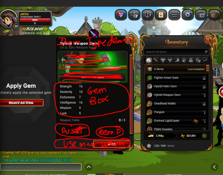 When a monster drops a gem, it will go to your loot bag. You will instantly be able to tell what type of gem it is. A weapon power gem, a armor power gem, etc. You can then...