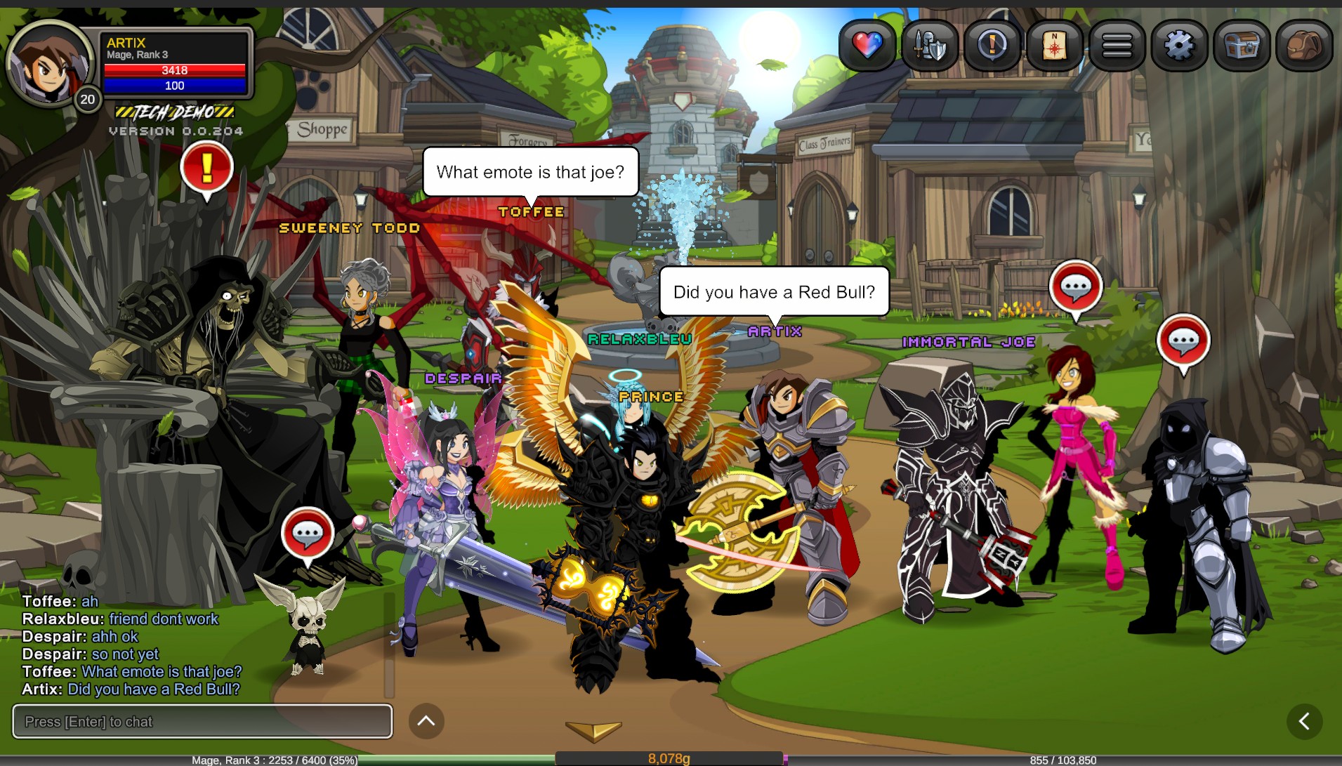 While attempting to take video for the Kickstarter trailer... I was shocked to discover the new movement code caused players to randomly walk backwards. LOL. Then Yulgar's Inn exploded. Emotes broke. We discovered this when we all tried to dance in the screenshot below. I think our recent security tightening was so intense it locked down half the slash commands. Then, well... Despair went to change her hair.